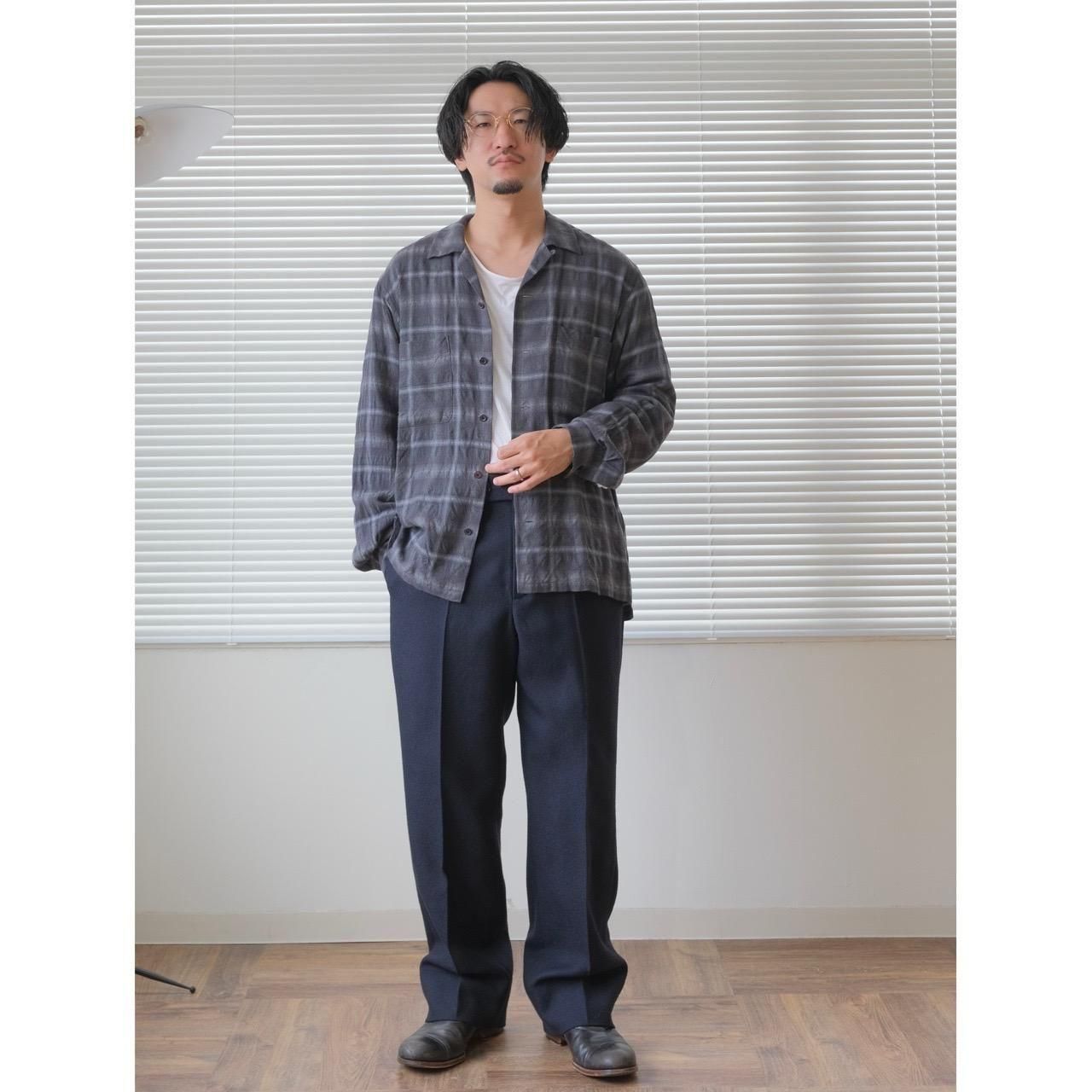 微起毛加工を行うことによりヴィンテージ感を出しています。ゆったりとしたオープンカラーシャツです。