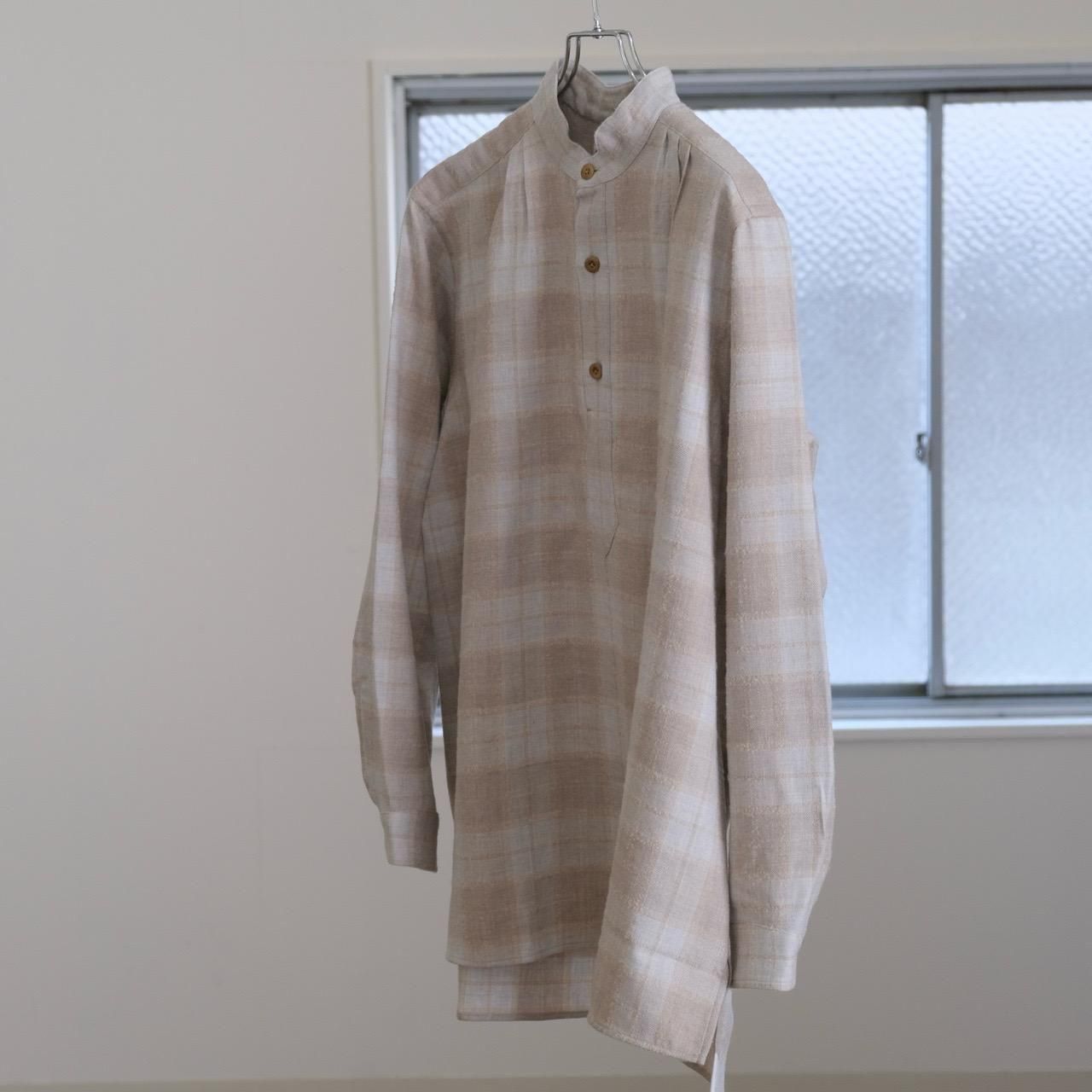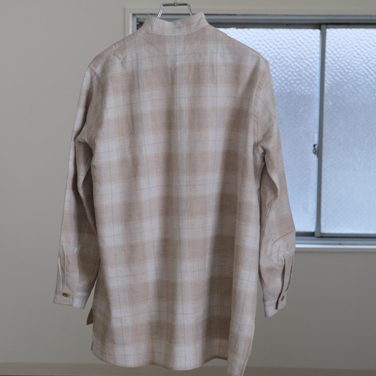 洒脱な藤田が着ているのだからきっと少しAラインで動きがありそう、とか裁縫をしている藤田の別の自画像から袖の開き止まりにはAquellosのガゼットのような補強布を手付けで優しく縫い止めました。