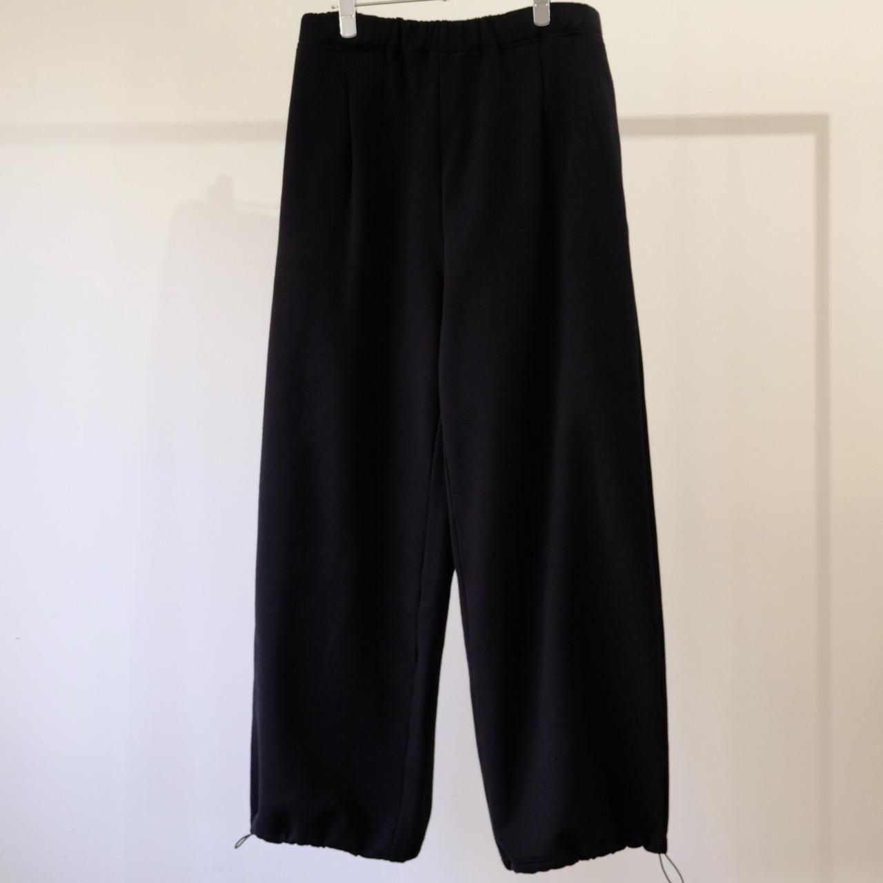 タックを入れ、スラックスライクなデザインにしたワイドスウェットパンツ。